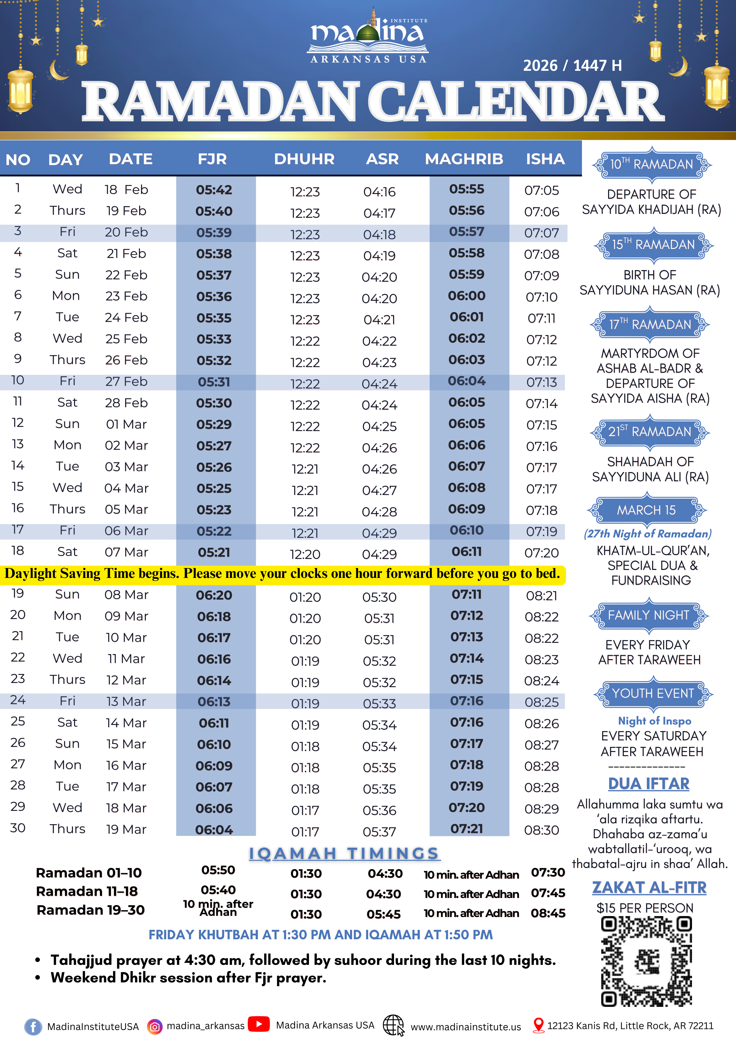 📌Please join us for daily Iftar and during the last 10 nights for Tahajjud prayer and Suhoor.